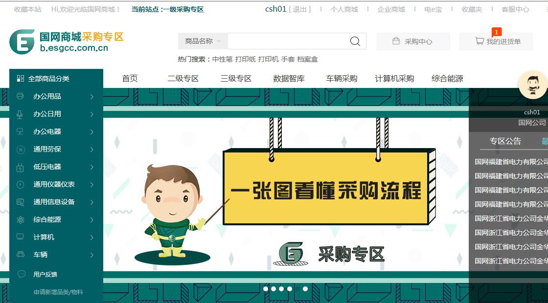 以物資相應用戶和密碼登陸登錄國網商城采購專區。